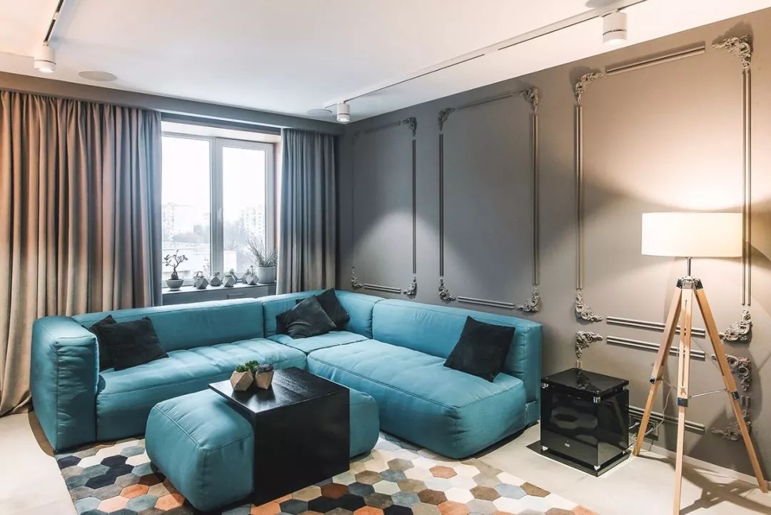 為了讓空間色調(diào)不單一,有一種跳脫的美感,設(shè)計(jì)師給客廳安置了海藍(lán)色的藝沙發(fā),不同色彩的家具,豐富空間的視覺效果。