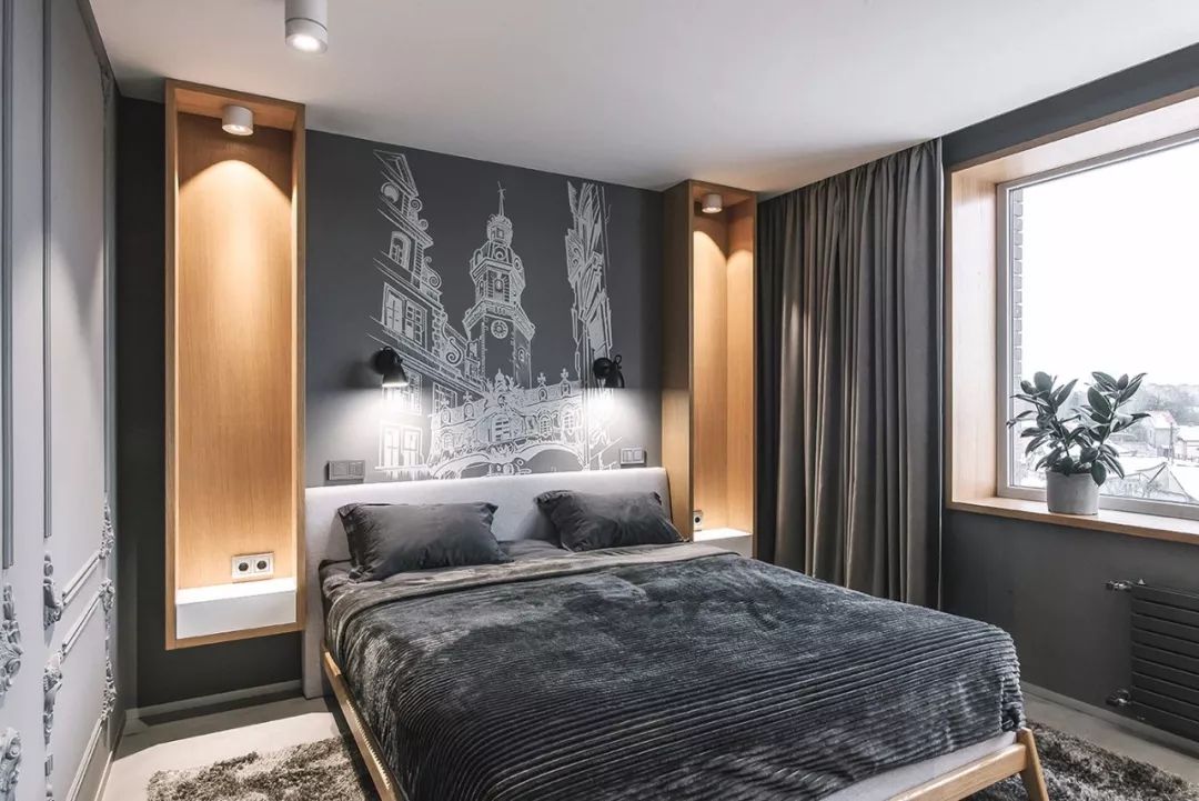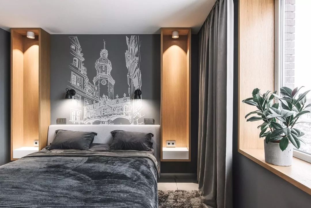 臥室主色調(diào)是灰色,搭配木色,這簡直就是絕配,含蓄內(nèi)斂而且很耐看。