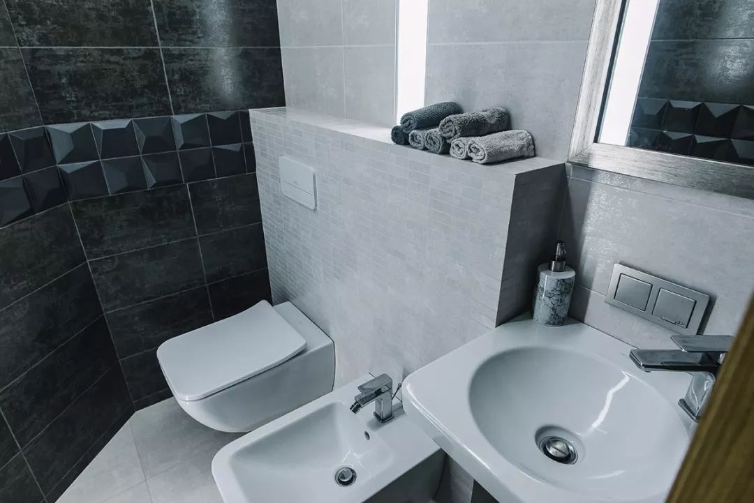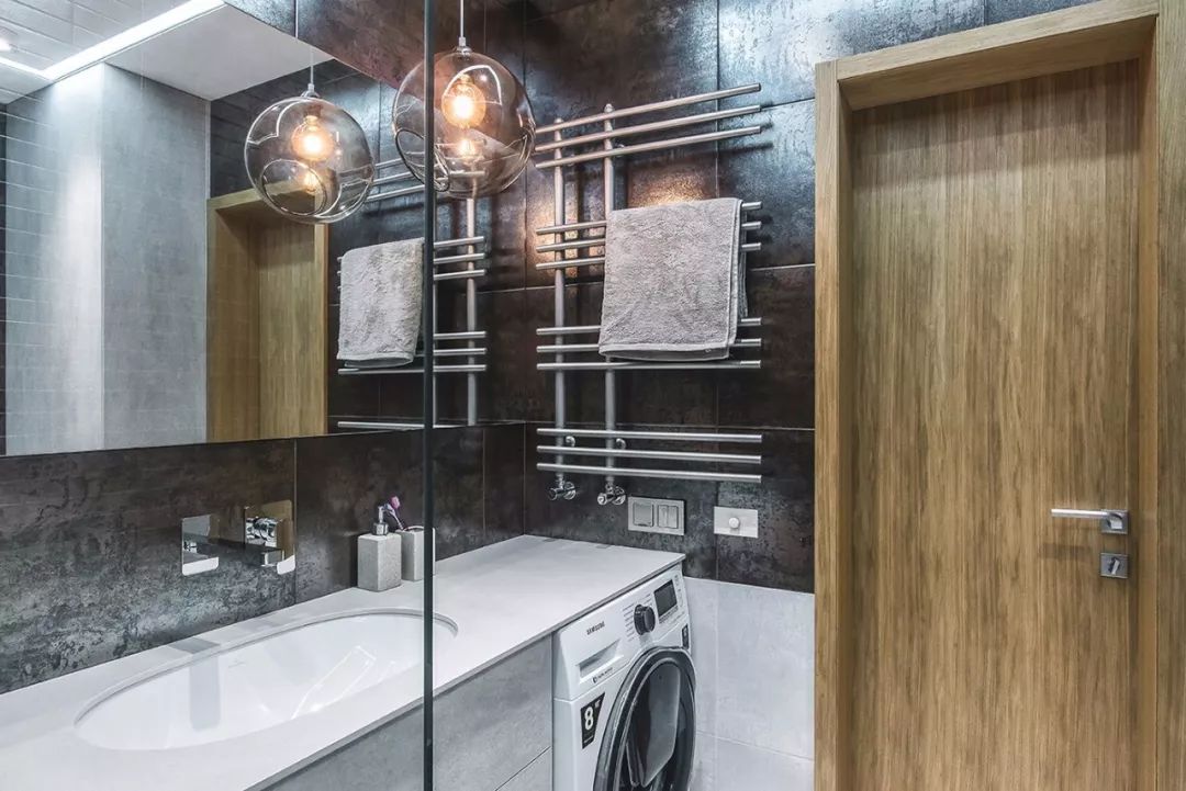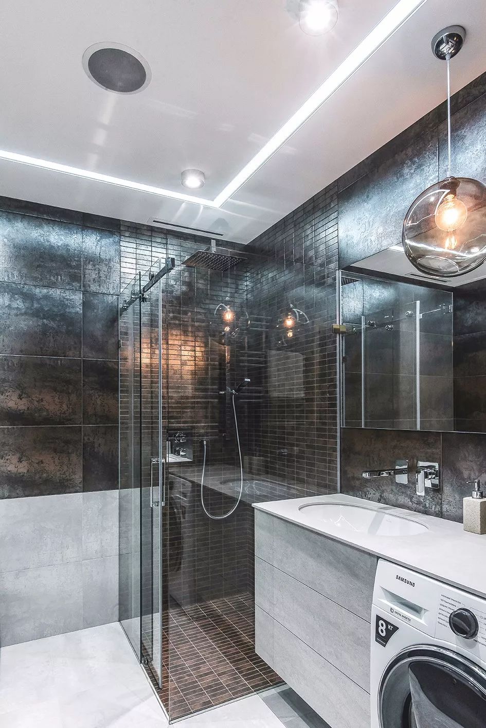 灰色衛(wèi)生間,很有肌理感,搭配很有藝術(shù)氣氛的燈,所以看上去并不會(huì)顯得特別的冷,,給人的感覺很純凈自然也不乏現(xiàn)代時(shí)尚質(zhì)感。
