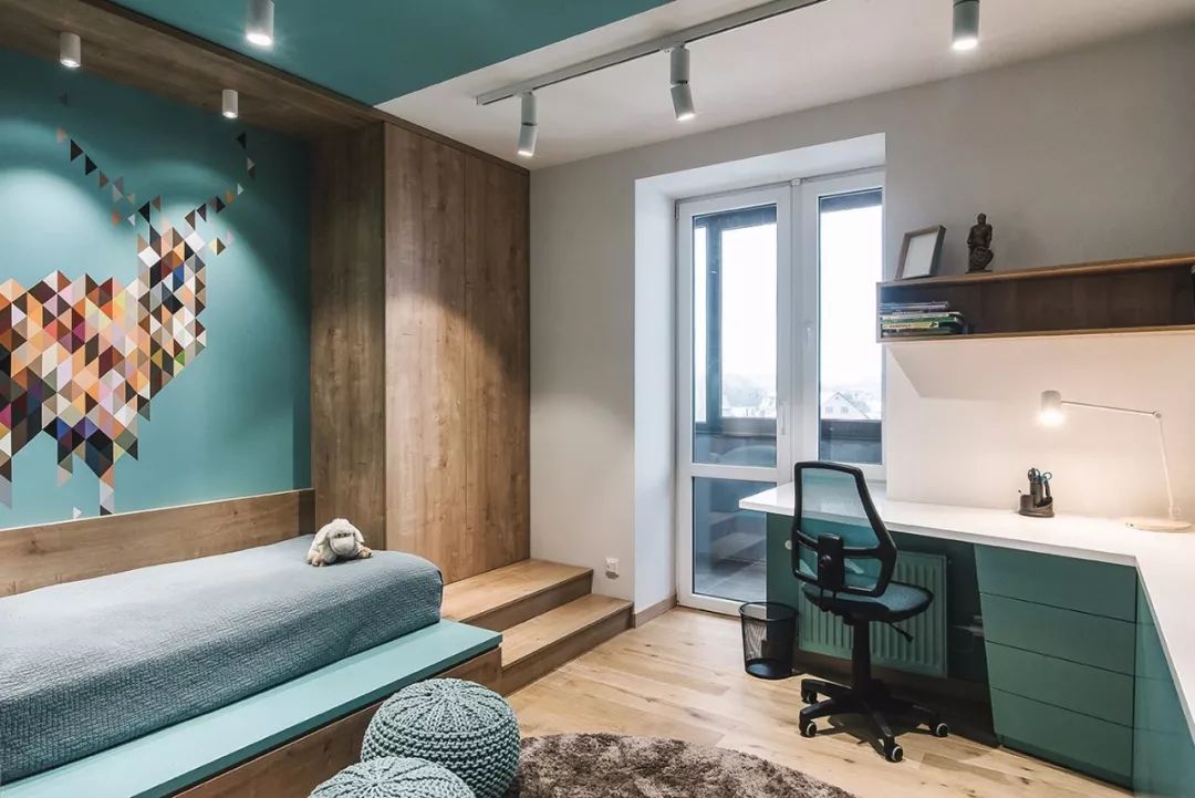 藍(lán)色搭配木色兒童房,木色搭配灰藍(lán)色調(diào)的臥室,設(shè)計(jì)者巧妙的將兩個(gè)補(bǔ)色結(jié)合,畫面太美不敢看!